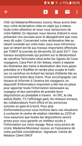 رد ONCF والذي جر عليه وابلا من الإنتقادات، أوضح فيه أن القطار تأخر بسبب الأشغال التي يجريها المكتب على مستوى المحطات الثلاث الكائنة بمدينة الدار البيضاء، متناسين أنهم أصدروا بلاغا على صفحتهم الرسمية على موقع التواصل الإجتماعي فايسبوك، أكدت أن توقف حركة القطارات ابتداء من السادسة كان بسبب إقدام مجهولين على سرقة أسلاك كهربائية، بين محطتين الصخيرات وتمارة.