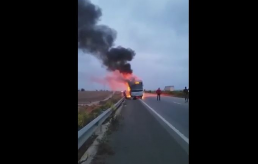 حريق ضخم يلتهم حافلة للنقل العمومي بالجديدة (فيديو)