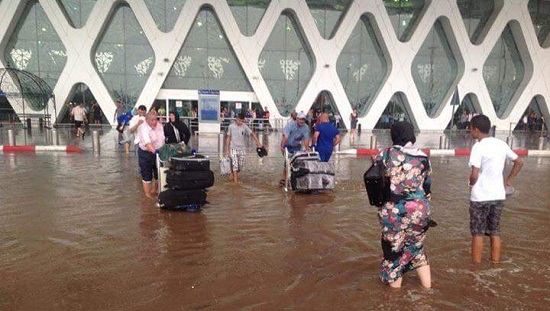 صورة اليوم: مطار مراكش الدولي يتحول إلى ميناء بسبب الأمطار