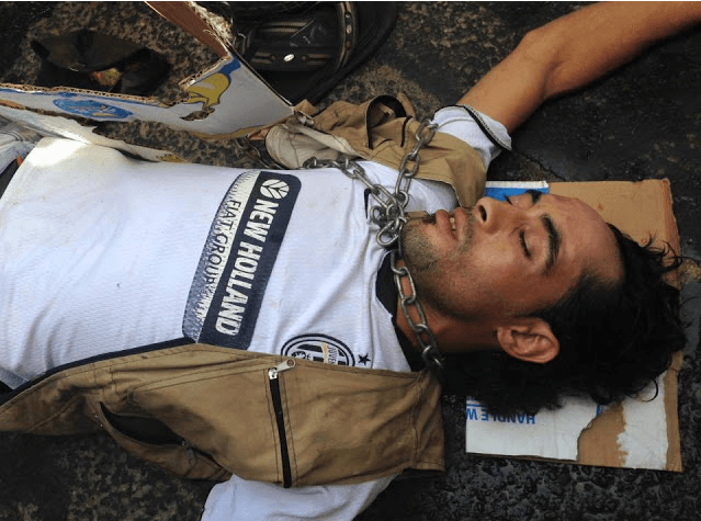 عونا سلطة يقيدان بائع متجولا بسلسلة حديدية وربطه بعربته