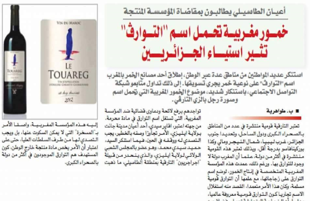 صحف جزائرية: تسمية نبيذ مغربي “الطوارق” استفزاز