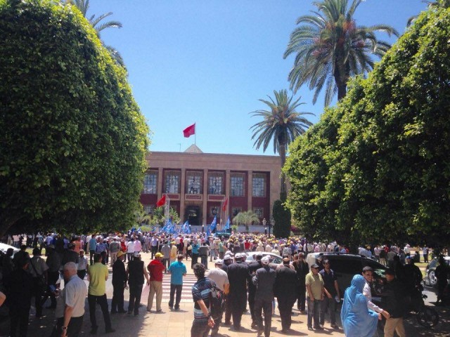المركزيات النقابية تخوض إعتصاما أمام البرلمان تزامنا مع تواجد ابن كيران بمجلس المستشارين(صور)