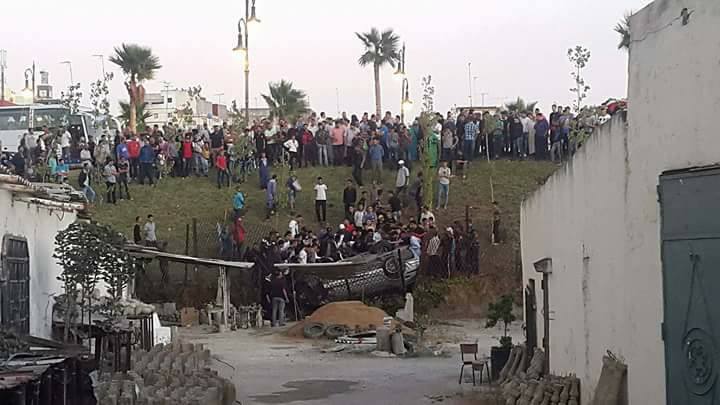 انقلاب سيارة من أعلى قنطرة مدخل مدينة طنجة (صور)