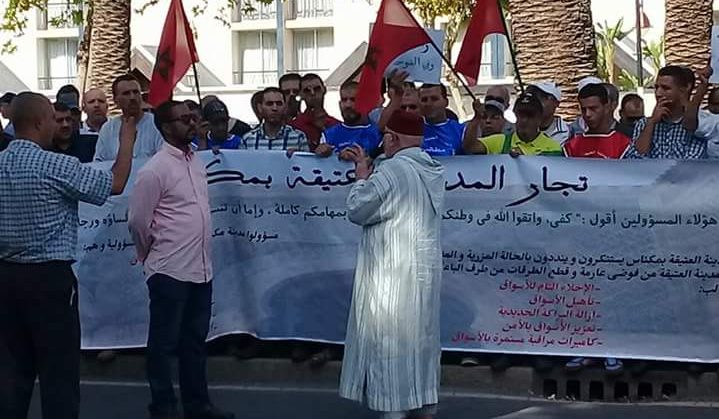 تجار مكناس يحتجون ضد “الفرّاشة” أمام مقرة ولاية الجهة بفاس