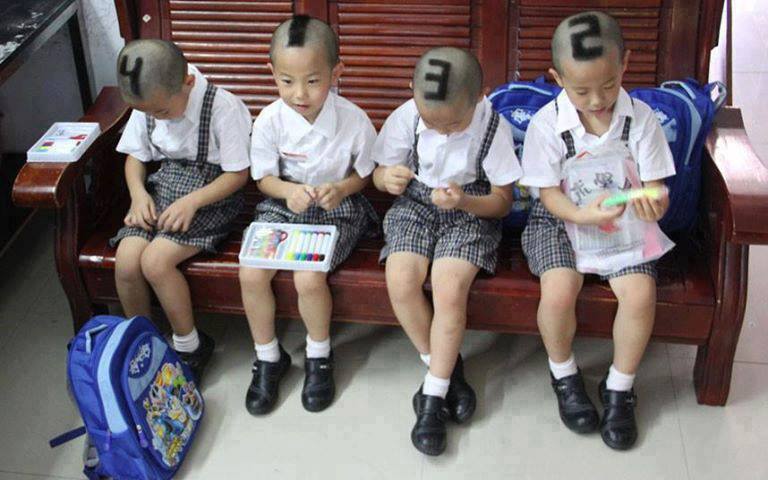 إستمع للمقال صورة اليوم تنقلنا إلى جنوب الصين، حيث قرر أبوان حلق شعر رأس توائمهم الأربعة بحيث يتشكل رقم معين…