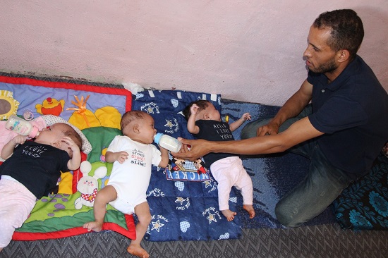 معاناة يومية لأب معدوم مع 3 توائم تدفعه لإطلاق نداء لذوي القلوب الرحيمة (فيديو)