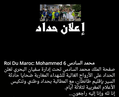 صفحة الملك محمد السادس على الفايسبوك تعلن الحداد وتدعو إلى حداد وطني مع تنكيس الأعلام