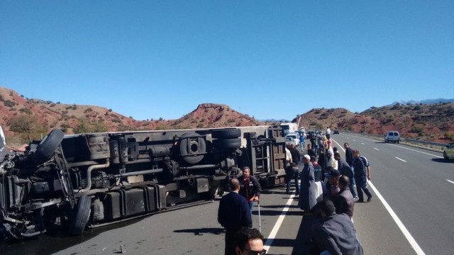 صور: انقلاب شاحنة في الطريق الرابط بين شيشاوة وأكادير بسبب البنيات التحتية المزرية