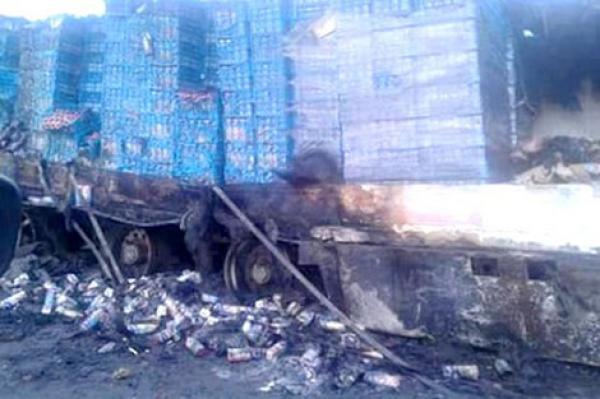 حريق يلتهم شاحنة ألبان بسبب تماس كهربائي بالعيون