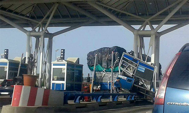 شاحنة تصطدم بمقصورة الأداء بالطريق السيار طنجة