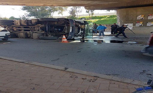 خسائر مادية بعد اصطدام شاحنة بسقف قنطرة بسلا