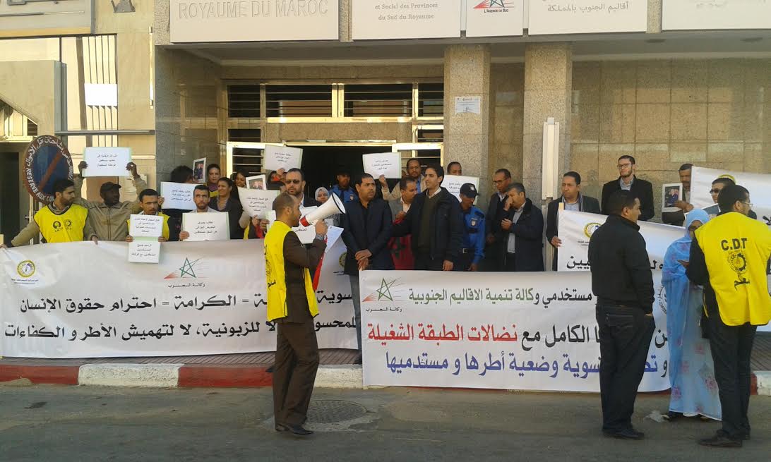 مستخدمو وكالة الجنوب المنتقلون من الرباط الى العيون ينظمون وقفة احتجاجية